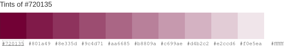 #720135 color RGB value is (114,1,53). #720135 hex color red value is 114, green value is 1 and the blue value of its RGB is…